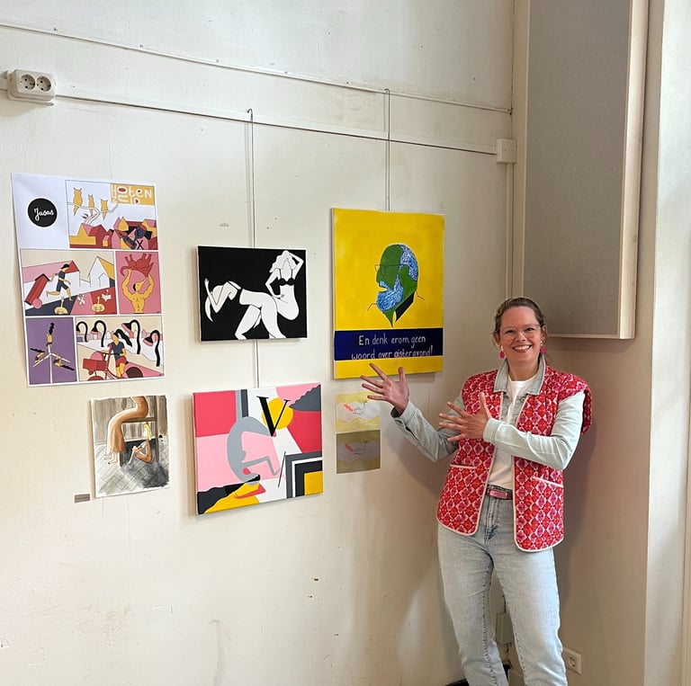 Elke opdracht zie ik als een kans om taal en beeld met elkaar te verbinden, en met kleur, compositie en karakter een gevoel over te brengen dat niet letterlijk hoeft te zijn. Zo maakte ik een serie over mijn woonplaats, waarin ik de parels én ergernissen verbeeldde.